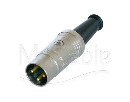 Кабельный разъем DIN, 3-х контактный, <штекер/папа>, металлический никелированный корпус, контакты - покрытие золото, резиновый хвостовик, на кабель диаметром 5.0 мм.