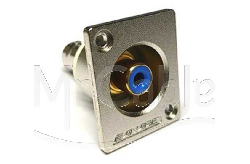 Панельный разъем RCA, <гнездо/мама>, фланец стандарта ITT Cannon, металлический никелированный корпус, под пайку. КСВ 1.1 или меньше, частота до 50 МГц. Возможно использование с HDTV видеосигналами. Цвет изолятора: синий.