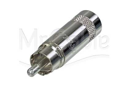 Кабельный разъем RCA, <штекер/папа>, металлический никелированный корпус, контакты покрытие - никель, под пайку, на кабель диаметром 7.2 мм.