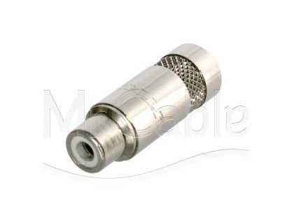 Кабельный разъем RCA, <гнездо/мама>, металлический никелированный корпус, контакты покрытие - никель, под пайку, на кабель диаметром 7.2 мм.