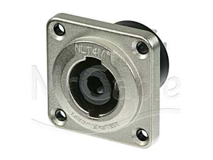 Панельный разъем SPEAKON для подключения громкоговорителей / усилителей, туровое применение, 4-х контактный <штекер/папа>, прочный влагостойкий металлический корпус, фланец G-типа, класс защиты (IP 54), надежная фиксация по технологии «Quick Lock», плоские контакты ¼ ", контакты - покрытие серебро, рабочее напряжение 250 В / ток 40 А, под пайку.
