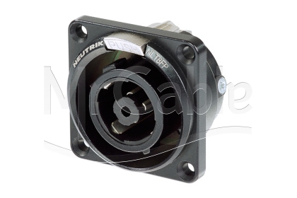 Панельный разъем SPEAKON для подключения громкоговорителей / усилителей, туровое применение, 8-и контактный <гнездо/мама>, прочный черный-хромированный металлический корпус, фланец G-типа, класс защиты (IP 50), контакты - покрытие серебро, подходит для проводов сечением до 6.0 мм2 (AWG 10), рабочее напряжение 250 В / ток 40 А, под пайку.