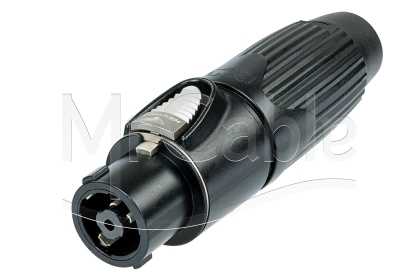 Кабельный разъем SPEAKON для подключения громкоговорителей / усилиптелей, туровое применение, 8-и контактный <гнездо/мама>, прочный черный-хромированный металлический корпус, класс защиты (IP 50), надежная фиксация блокировки, контакты - покрытие серебро, под пайку, зажимной патрон, черный колпачок, подходит для проводов сечением до 6.0 мм2 (AWG 10), рабочее напряжением 250 В / ток 40 А, на кабель диаметром (8.0-20.0 мм).