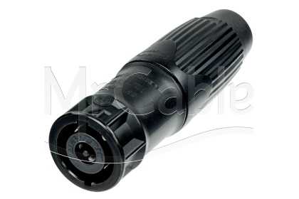 Кабельный разъем SPEAKON для подключения громкоговорителей / усилиптелей, туровое применение, 8-и контактный <штекер/папа>, прочный черный-хромированный металлический корпус, класс защиты (IP 50), надежная фиксация блокировки, контакты - покрытие серебро, под пайку, зажимной патрон, черный колпачок, подходит для проводов сечением до 6.0 мм2 (AWG 10), рабочее напряжением 250 В / ток 40 А, на кабель диаметром (8.0-20.0 мм).