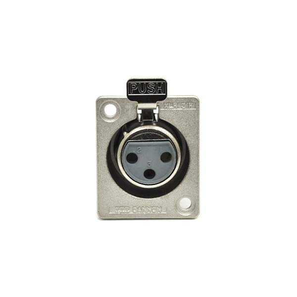 Панельный разъем XLR, 3-х контактный <гнездо/мама>, фланец D-типа, металлический никелированный корпус, под пайку