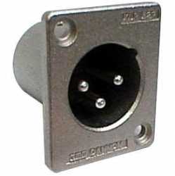 Панельный разъем XLR, 3-х контактный <штекер/папа>, фланец D-типа, металлический никелированный корпус, под пайку