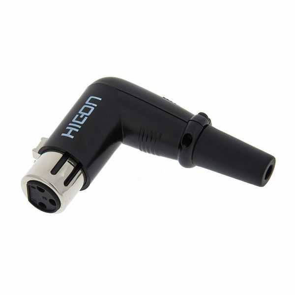 Кабельный разъем XLR, 3-х контактный <гнездо/мама>, угловой, металлический черный корпус, контакты - покрытие серебро, под пайку, резиновый конический хвостовик, на кабель диаметром (6.0-8.0 мм)