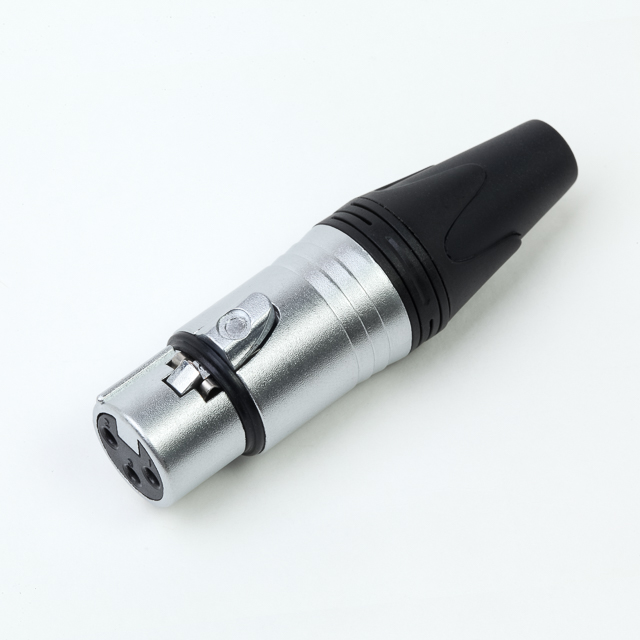 Кабельный разъем XLR, 3-х контактный <гнездо/мама>, X-серия, металлический корпус (мельхиор голубой), контакты - покрытие серебро, под пайку, зажимной патрон, пластиковый колпачок на кабель диаметром (3.0-8.0 мм)