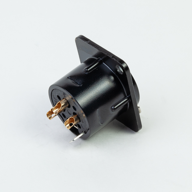 Панельный разъем XLR, 3-х контактный <гнездо/мама>, DL-серия, фланец D-типа, черный металлический корпус, контакты - покрытие золото, под пайку