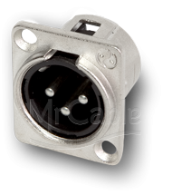 Панельный разъем XLR, 3-х контактный <штекер/папа>, фланец D-типа, металлический никелированный корпус, контакты - покрытие золото, под пайку