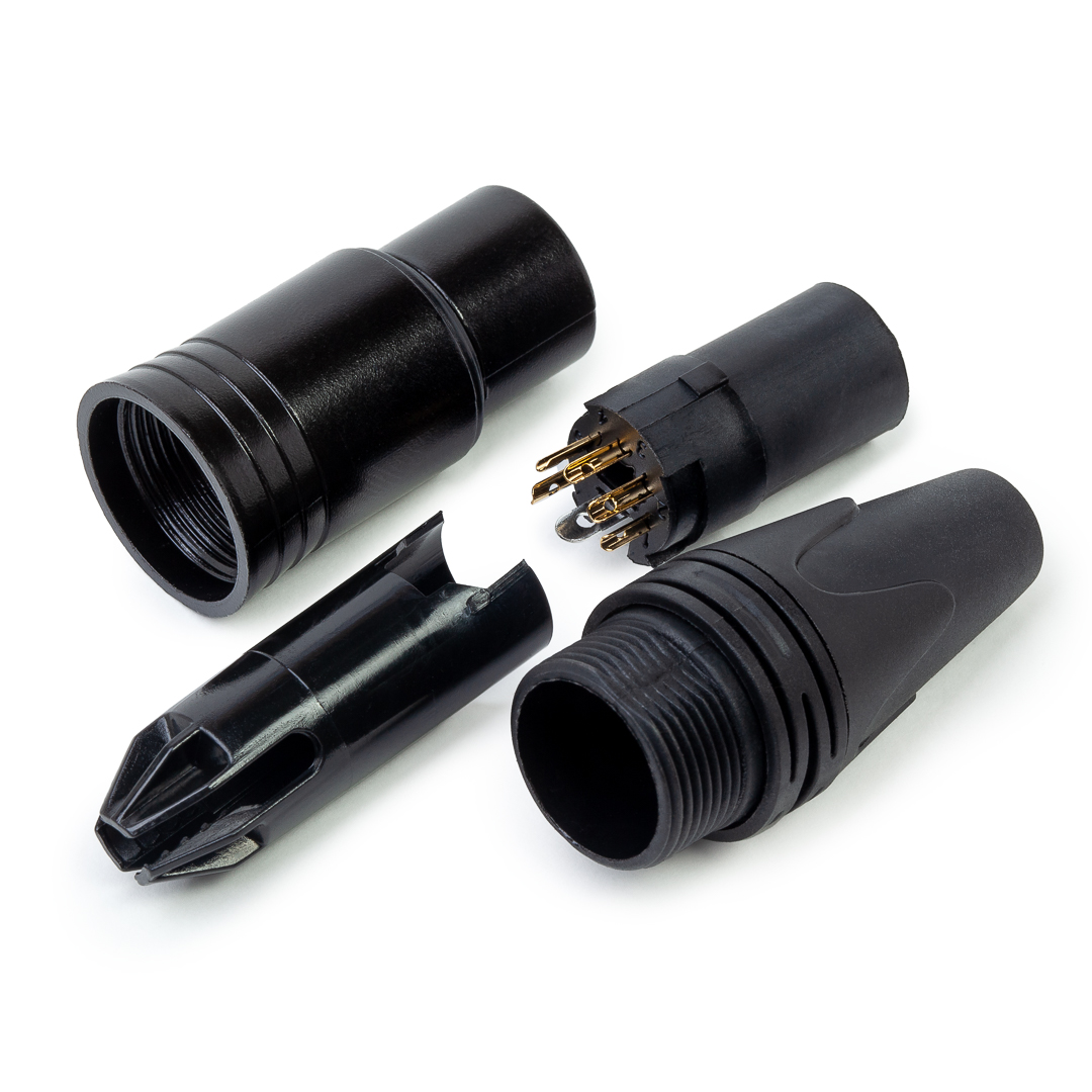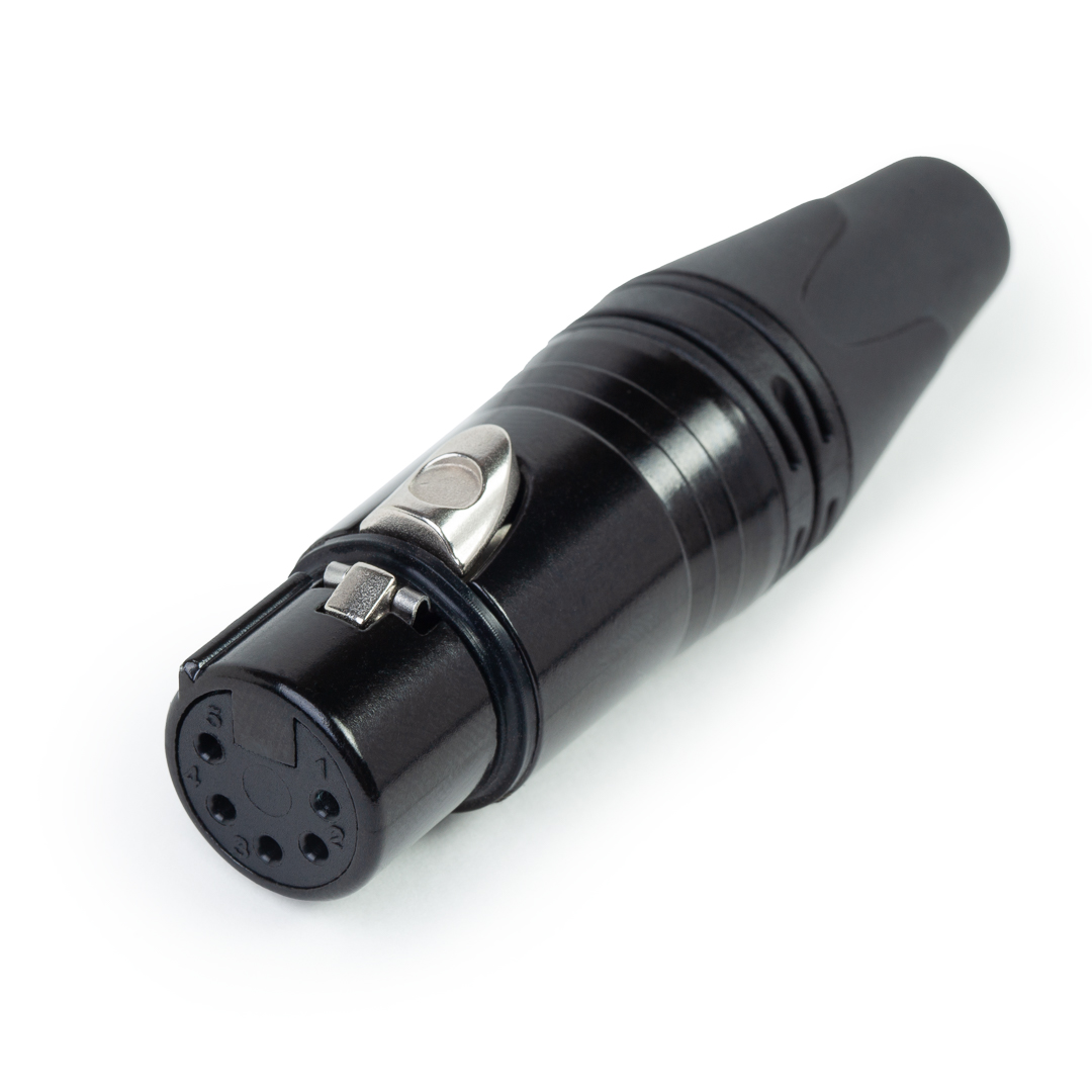 Кабельный разъем XLR, 5-и контактный <гнездо/мама>, X-серия, черный металлический корпус, контакты - покрытие золото, под пайку, зажимной патрон черного цвета, пластиковый колпачок на кабель диаметром (5.0-8.0 мм)