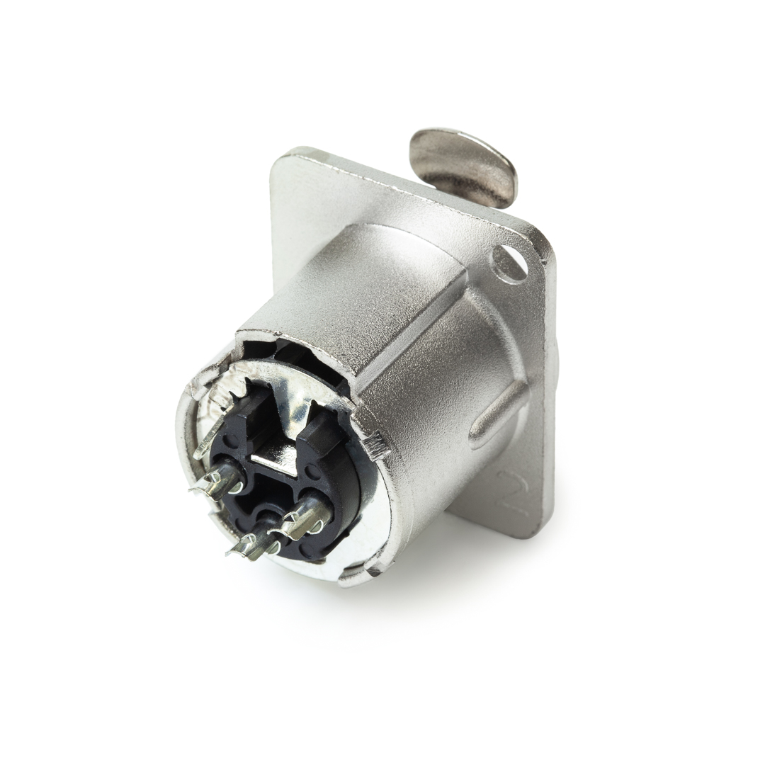 Панельный разъем XLR, 3-х контактный <гнездо/мама>, А-серия, фланец D-типа, металлический никелированный корпус, контакты - покрытие серебро, под пайку