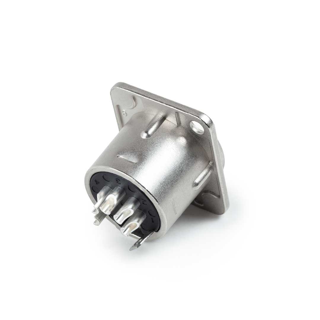 Панельный разъем XLR, 5-х контактный <гнездо/мама>, DL-серия, фланец D-типа, металлический никелированный корпус, контакты - покрытие серебро, под пайку