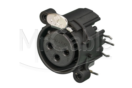 Панельный разъем XLR, 3-х контактный <гнездо/мама>, А-серия, фланец А-типа, боковая правая установка PCB, компактный пластиковый корпус, заземление: отдельный контакт заземления соединен с корпусом разъема и заземлением панели установки, контакты - покрытие золото, под пайку.