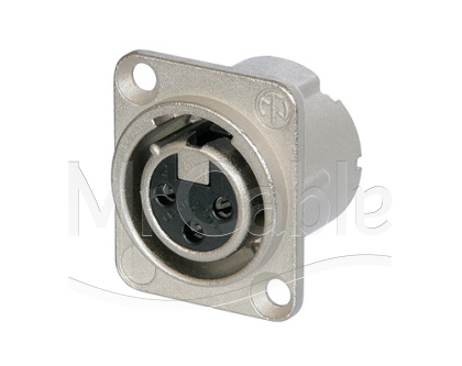 Панельный разъем XLR, 3-х контактный <гнездо/мама>, DLX-серия, фланец D-типа, компактный металлический никелированный корпус с двойным заземляющим контактом, обеспечивающий отличную защиту от RF, идеальное сочетание с кабельными разъемами серии EMC, контакты - покрытие серебро, удерживающая пружина вместо защелки, под пайку.