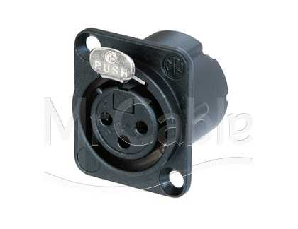 Панельный разъем XLR, 3-х контактный <гнездо/мама>, DLX-серия, фланец D-типа, черный компактный хромированный металлический корпус с двойным заземляющим контактом, обеспечивающий отличную защиту от RF, идеальное сочетание с кабельными разъемами серии EMC, контакты - покрытие золото, под пайку.