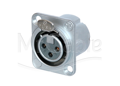 Панельный разъем XLR, 3-х контактный <гнездо/мама>, DLX-HE серия, фланец D-типа, компактный велюро-хромовый корпус с двойным заземляющим контактом, обеспечивающий отличную защиту от RF, идеальное сочетание с кабельными разъемами серии EMC, контакты - покрытие золото, под пайку.