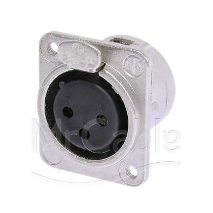 Панельный разъем XLR, 3-х контактный <гнездо/мама>, DL-серия, фланец D-типа, металлический никелированный корпус, контакты - покрытие серебро, монтажные отверстия M3, под пайку.