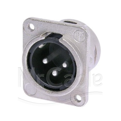 Панельный разъем XLR, 3-х контактный <штекер/папа>, DL-серия, фланец D-типа, металлический никелированный корпус, контакты - покрытие серебро, монтажные отверстия M3, под пайку.