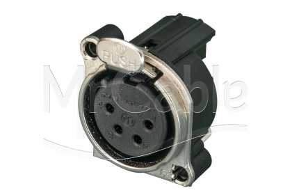 Панельный разъем XLR, 4-х контактный <гнездо/мама>, B-серия, металлический фланец А-типа, дополнительная защита от RF, горизонтальная установка PCB, компактный пластиковый корпус, заземление: отдельный контакт заземления - корпус разъема - корпус установки соединены, контакты - покрытие золото, под пайку.