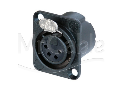 Панельный разъем XLR, 4-х контактный <гнездо/мама>, DLX-серия, фланец D-типа, черный компактный хромированный металлический корпус с двойным заземляющим контактом, обеспечивающий отличную защиту от RF, контакты - покрытие серебро, под пайку.