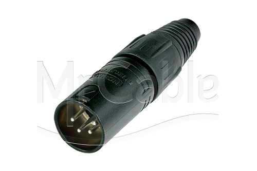 Кабельный разъем XLR, 4-х контактный <штекер/папа>, X-серия, черный металлический корпус, контакты - покрытие серебро, под пайку, зажимной патрон, полиуретановый колпачок на кабель диаметром (3.5-8.0 мм).