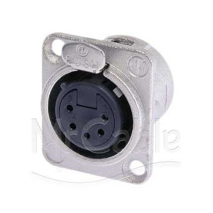 Панельный разъем XLR, 5-и контактный <гнездо/мама>, DL-серия, фланец D-типа, металлический никелированный корпус, контакты - покрытие серебро, под пайку.