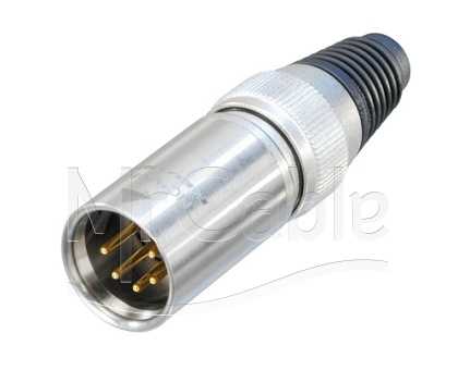 Кабельный разъем XLR, 5-и контактный <штекер/папа>, X-HD серия, "сверхпрочный", влагозащищенный (IP 65), корпус из нержавеющей стали, все элементы конструкции маталлические, контакты - покрытие золото, под пайку, зажимной патрон, полиуретановый колпачок на кабель диаметром (3.5-8.0 мм).