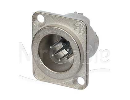 Панельный разъем XLR, 6-и контактный <штекер/папа>, DLX-серия, фланец D-типа, компактный металлический никелированный корпус с двойным заземляющим контактом, обеспечивающий отличную защиту от RF, контакты - покрытие серебро, под пайку.