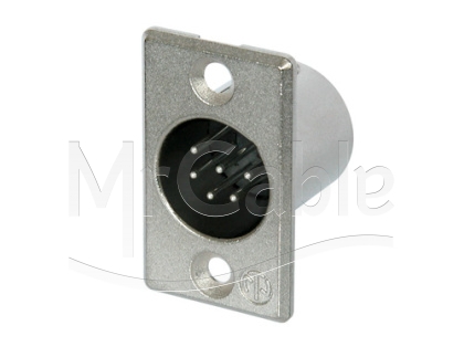 Панельный разъем XLR, 6-и контактный <штекер/папа>, P-серия, фланец P-типа, компатный металлический никелированный корпус, контакты - покрытие серебро, под пайку.