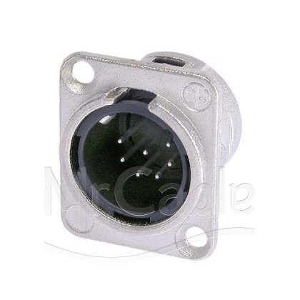 Панельный разъем XLR, 7-и контактный <штекер/папа>, DL-серия, фланец D-типа, металлический никелированный корпус, контакты - покрытие серебро, под пайку.