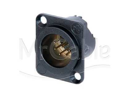 Панельный разъем XLR, 7-и контактный <штекер/папа>, DLX-серия, фланец D-типа, черный компактный хромированный металлический корпус с двойным заземляющим контактом, обеспечивающий отличную защиту от RF, контакты - покрытие золото, под пайку.