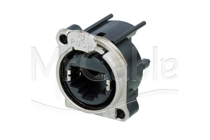 Панельный разъем RJ45 EtherCON <гнездо/мама>, B-серия, металлический никелированный фланец А-типа, соответствует классу D, горизонтальная установка PCB, пластиковый корпус, фиксация замка по технологии "Latch lock", контакты - покрытие золото. Максимальная толщина панели 3 мм. Внимание! Не совместим с кабельными разъемами CAT6 NE8MC6-MO и NKE6S *.