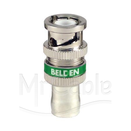 Кабельный разъем BNC для аналоговых и цифровых видеосигналов HD-SDI, <штекер/папа>, компрессионный, для кабеля Belden 1694A (серия Brilliance), зеленая маркировка, металлический никелированный корпус, под обжим, центральный контакт - покрытие золото. 75 Ом. Блокировка замка. Простой монтаж разъема. Байонетный замок разъема позволяет надежно использовать его в тракте сигналов с частотой до 4.5 гГц. Потери: 29 дБ (при 4.5 гГц).