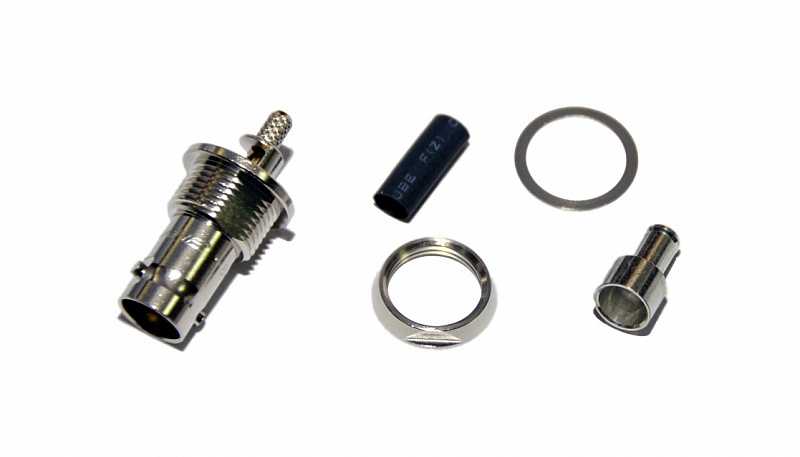 Панельный разъем BNC для аналоговых и цифровых видеосигналов HD-SDI, <гнездо/мама>, с гайкой, металлический никелированный корпус, диэлектрик (PTFE), центральный контакт - покрытие золото, под пайку, обжимной цилиндр со стороны кабельного соединения, 75 Ом. КСВ не более 1.1, частота до 1.0 гГц. Подходит для кабелей: Canare серии *1.5С*