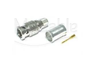 Кабельный разъем BNC для аналоговых и цифровых видеосигналов HD-SDI, серия BCP-C, <штекер/папа>, металлический никелированный корпус, диэлектрик (PTFE), центральный контакт - покрытие золото, под обжим, 75 Ом. КСВ не более 1.1, частота до 2.0 гГц. Подходит для кабелей: Canare L-7CHD.