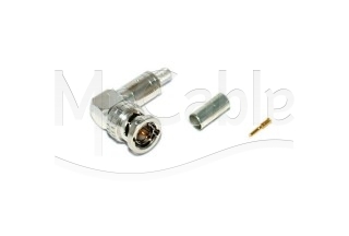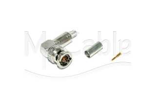 Кабельный разъем BNC, угловой, для аналоговых и цифровых видеосигналов HD-SDI, серия BCP-LC, <штекер/папа>, металлический никелированный корпус, диэлектрик (PTFE), центральный контакт - покрытие золото, под обжим, 75 Ом. КСВ не более 1.1, частота до 2.0 гГц. Подходит для кабелей: Canare L-3C2VS, L-3C2V, V(3-5)-3C.