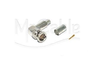 Кабельный разъем BNC, угловой, для аналоговых и цифровых видеосигналов HD-SDI, серия BCP-LC, <штекер/папа>, металлический никелированный корпус, диэлектрик (PTFE), центральный контакт - покрытие золото, под обжим, 75 Ом. КСВ не более 1.1, частота до 2.0 гГц. Подходит для кабелей: Canare L-3CFB, V(3-5)-3CFB, A3V2-FB.