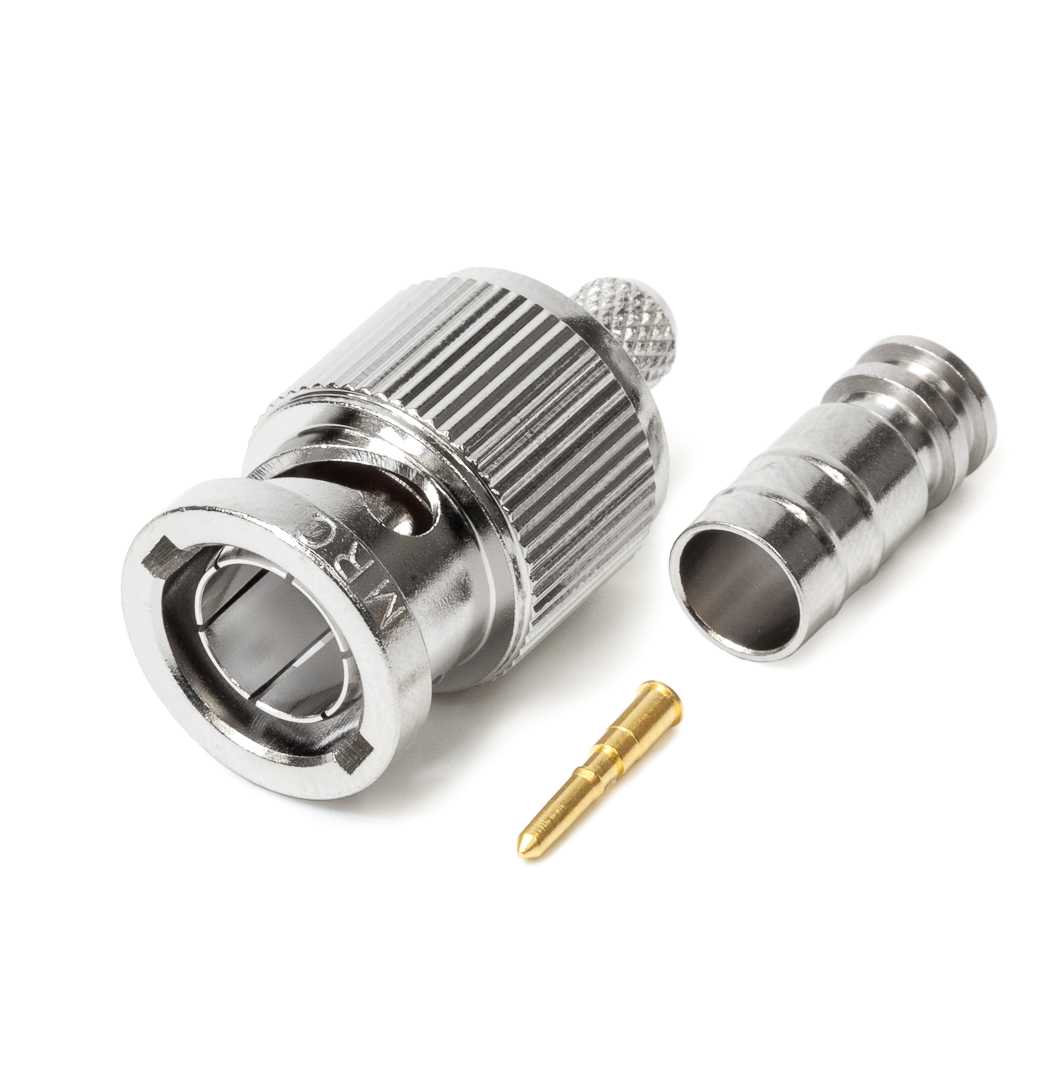 Кабельный разъем BNC для аналоговых и цифровых видеосигналов 12G-SDI 4K UHD 75 Ом, серия B, <штекер/папа>, никелированный корпус из бронзы, центральный контакт - покрытие золото, под обжим. КСВ не более 1.1, частота до 3.0 гГц. (альтернатива Canare BCP-B25HD). Подходит для кабелей: Canare L-2.5CHD. Полностью совместим с обжимным инструментом Canare.