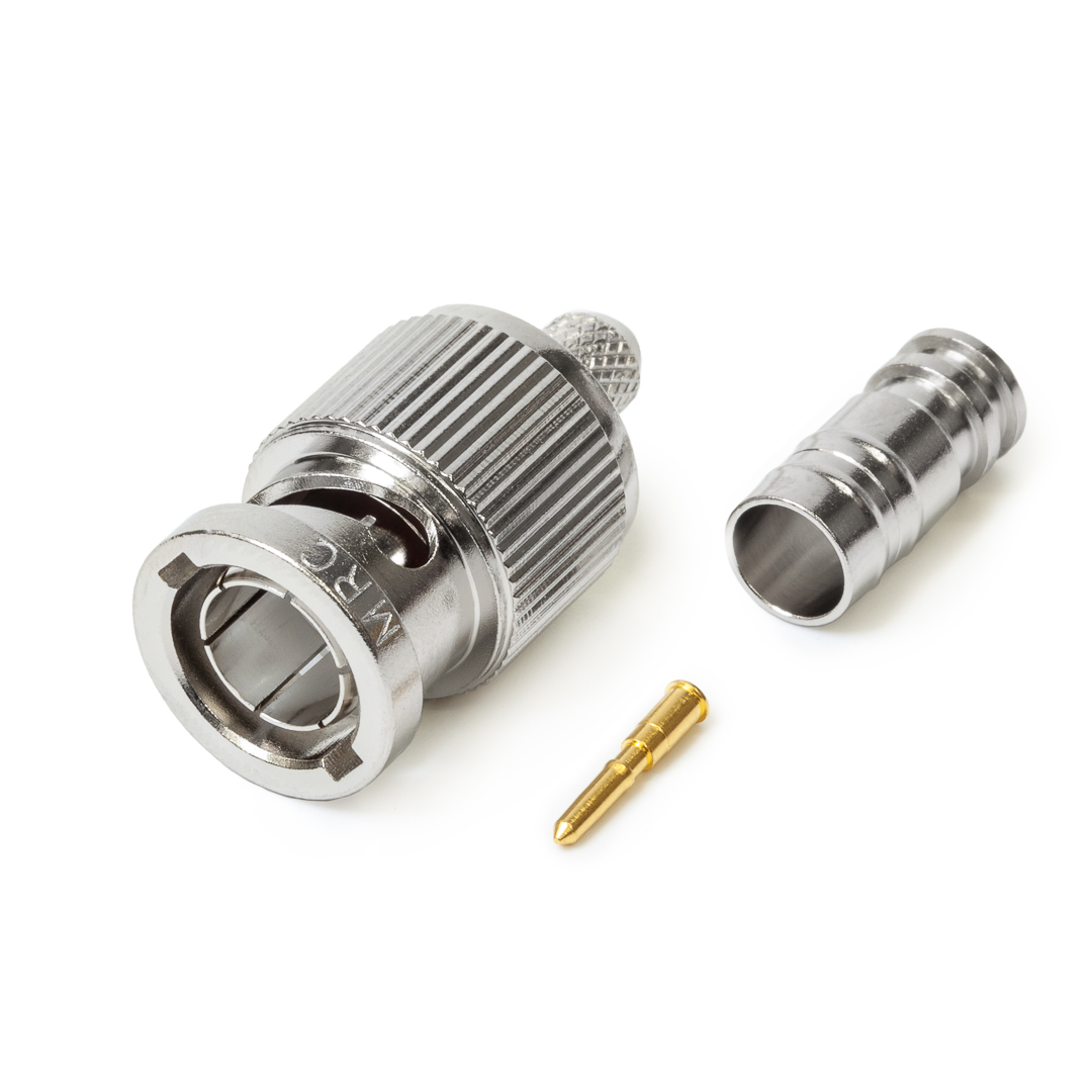 Кабельный разъем BNC для аналоговых и цифровых видеосигналов 12G-SDI 4K UHD 75 Ом, <штекер/папа>, никелированный корпус из бронзы, центральный контакт - покрытие золото, под обжим. КСВ не более 1.1, частота до 3.0 гГц. (аналог Canare BCP-B28). Подходит для кабелей: GABRIEL GAV 7506 HD VIDEO CABLE FRNC-C, GABRIEL GAV 7506 HD VIDEO CABLE PVC, DRAKA HD PRO 0.6/2.8 AF FRNC, Belden 1855ENH. Полностью совместим с обжимным инструментом Canare.