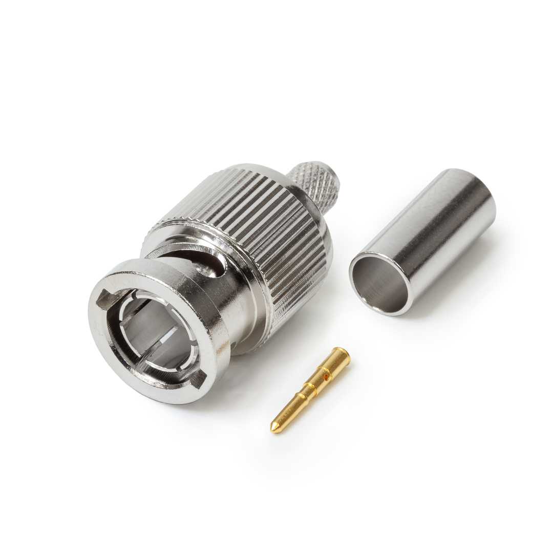 Кабельный разъем BNC для аналоговых и цифровых видеосигналов 12G-SDI 4K UHD 75 Ом, <штекер/папа>, никелированный корпус из бронзы, диэлектрик (PTFE), центральный контакт - покрытие золото, под обжим. (альтернатива Canare BCP-D33UHD). Подходит для кабелей: Canare L-3.3CUHD. Полностью совместим с обжимным инструментом Canare.