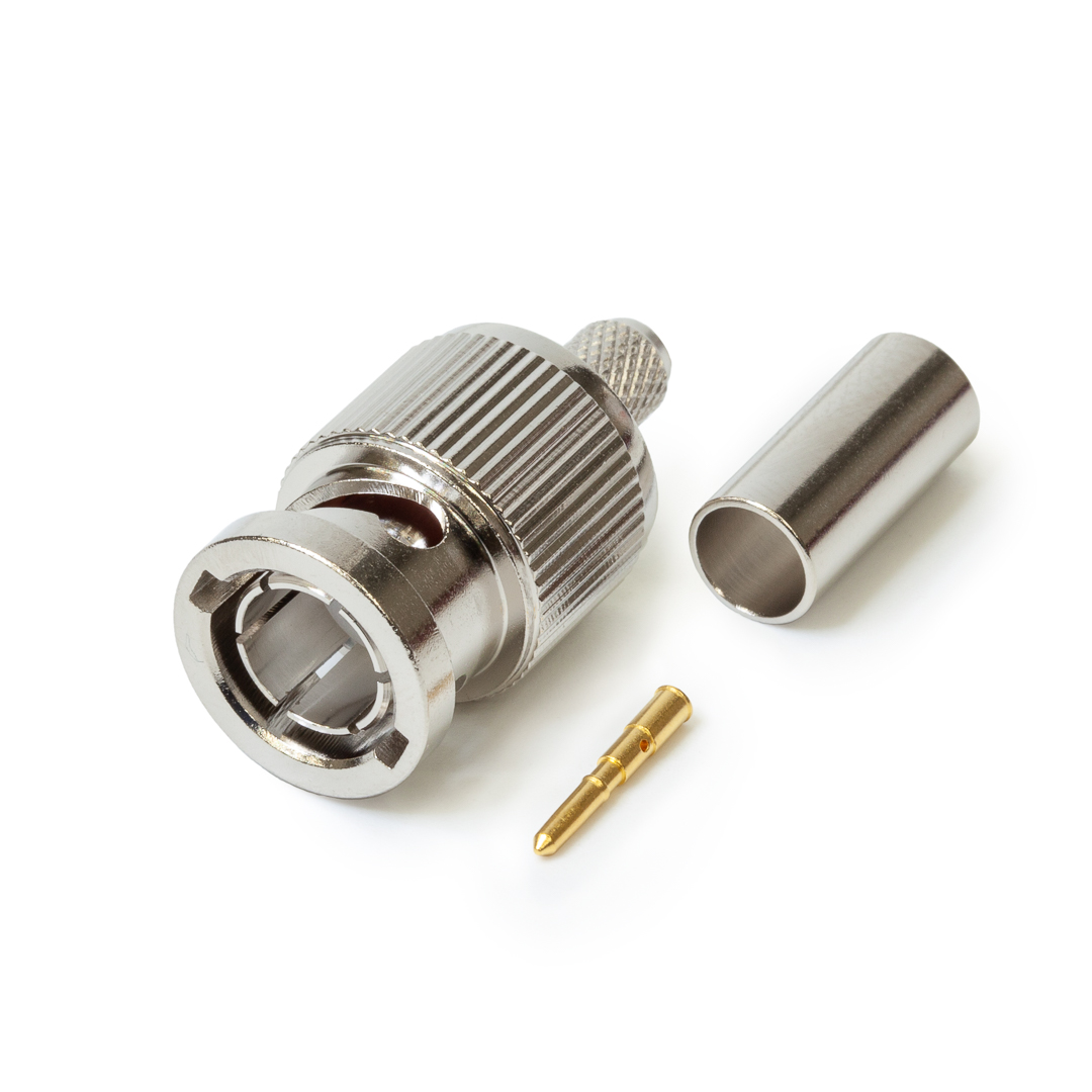 Кабельный разъем BNC 75 Ом для аналоговых и цифровых видеосигналов 12G-SDI 4K UHD, серия U, <штекер/папа>, никелированный корпус из бронзы, диэлектрик (PTFE), центральный контакт - покрытие золото, под обжим. (альтернатива Canare BCP-D33UHD). Подходит для кабелей: Canare L-3.3CUHD. Полностью совместим с обжимным инструментом Canare.