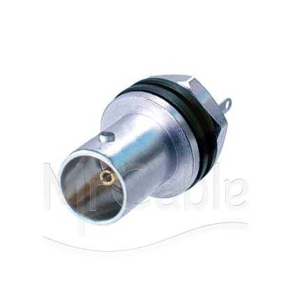 Панельный разъем BNC, для аналоговых и цифровых видеосигналов HD-SDI, <гнездо/мама>, изолированный, крепление на панель - гайка, корпус - латунь, изолятор (PTFE), центральный контакт - покрытие золото, под пайку, 75 Ом. Поддерживает сигналы типа - HD, SDI, Video, AES/EBU, Composit, YUV, RGB, RGBH, RGBHV. Возможно заземление панели (снять изолирующую шайбу).