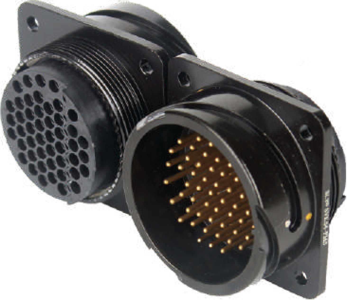Панельный многоконтактный разъем, <штекер/папа>, для 18 балансных каналов, структура: ,54- контактов, квадратный фланец, корпус - алюминий / покрытие порошковая эмаль, байонетная гайка, контакты - латунь / покрытие золото, под пайку, класс защиты IP67, t (-20°C +60°C). В комплекте: защитная крышка. Цвет: черный