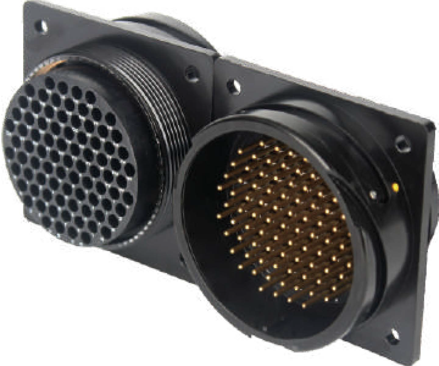 Панельный многоконтактный разъем, <штекер/папа>, для 28 балансных каналов, структура: ,85- контактов, квадратный фланец, корпус - алюминий / покрытие порошковая эмаль, байонетная гайка, контакты - латунь / покрытие золото, под пайку, класс защиты IP67, t (-20°C +60°C). В комплекте: защитная крышка. Цвет: черный