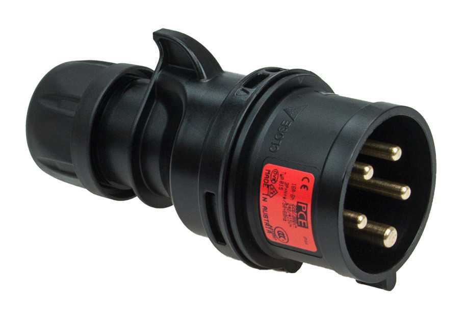 Кабельный силовой разъем СЕЕ 5-пин 32А, серия MIDNIGHT SHARK TT, <штекер/папа>, структура: 5-и контактный, 32А/400V/3P+N+E/IP44, корпус - полиамид (PA6), контакты - латунь, безвинтовой зажим (безвинтовая клемма TURBO TWIST), класс защиты IP44, подходит для проводов сечением 2.5 - 6.0 мм2, кабельный ввод для кабеля диаметром (11.5-20.0 мм), цвет: черный