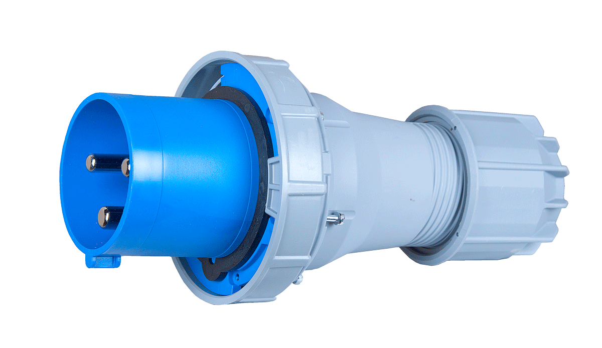 Кабельный силовой разъем СЕЕ 3-пин 125А, серия POWER TWIST, <штекер/папа>, структура: 3-х контактный, 125А/230V/2P+E/IP67, корпус - полиамид (PA6), контакты - латунь, под винтовой зажим (винтовая клемма TWIST), класс защиты IP67, подходит для проводов сечением 16.0 - 50.0 мм2, кабельный ввод для кабеля диаметром (22.5-50.0 мм), цвет: синий
