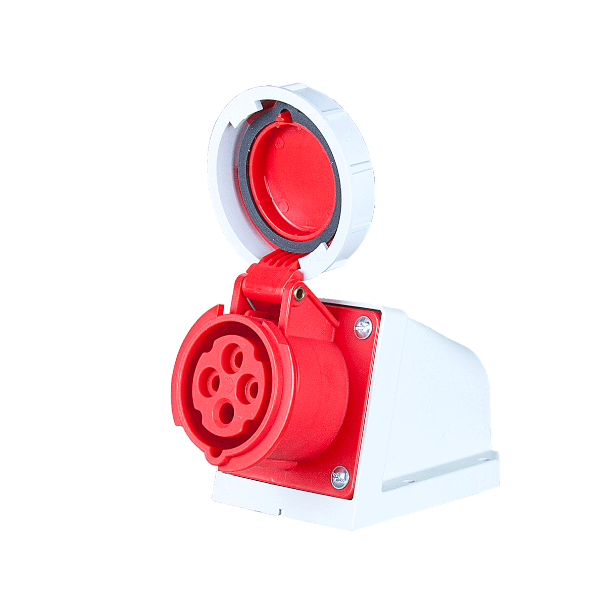Панельный силовой разъем СЕЕ 4-пин 16А с защитной крышкой, накладной, боковой ввод, серия SHARK, <гнездо/мама>, структура: 4-х контактный, 16А/400V/3P+E/IP67, корпус - полиамид (PA6), a = 148 мм, b = 99 мм, каб. ввод M25, крепление на поверхность / наклон 15°, контакты - латунь, под винтовой зажим (винтовая клемма TWIST), класс защиты IP67, подходит для проводов сечением: витая жила (1.0 - 2.5 мм2), цельная жила (1.0 - 4.0 мм2), цвет: красный