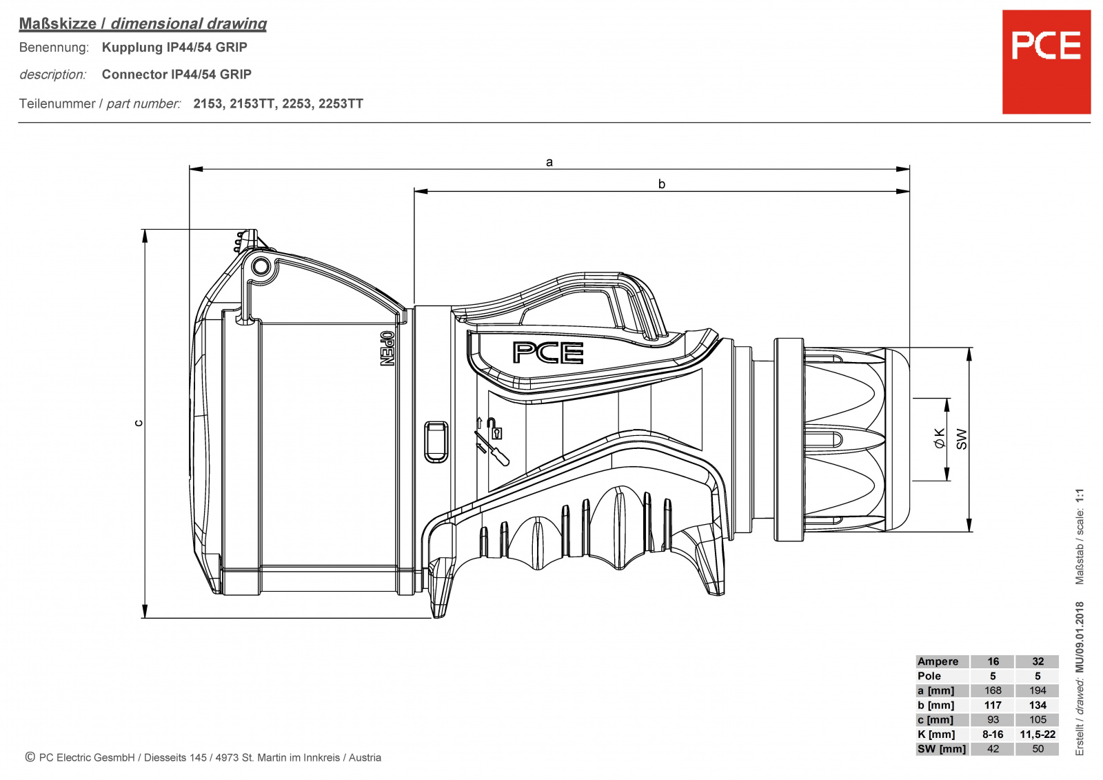 Категория Силовой Производитель PCE Категория товара Разъём Номинальный ток, А 32 Пол мама Установка кабельный Тип монтажа винтовая клемма Количество контактов 5 Диаметр совместимого кабеля, мм 11,5-20,0 Цвет корпуса красный Класс защиты IP44 Температура эксплуатации -30°C +80°C -