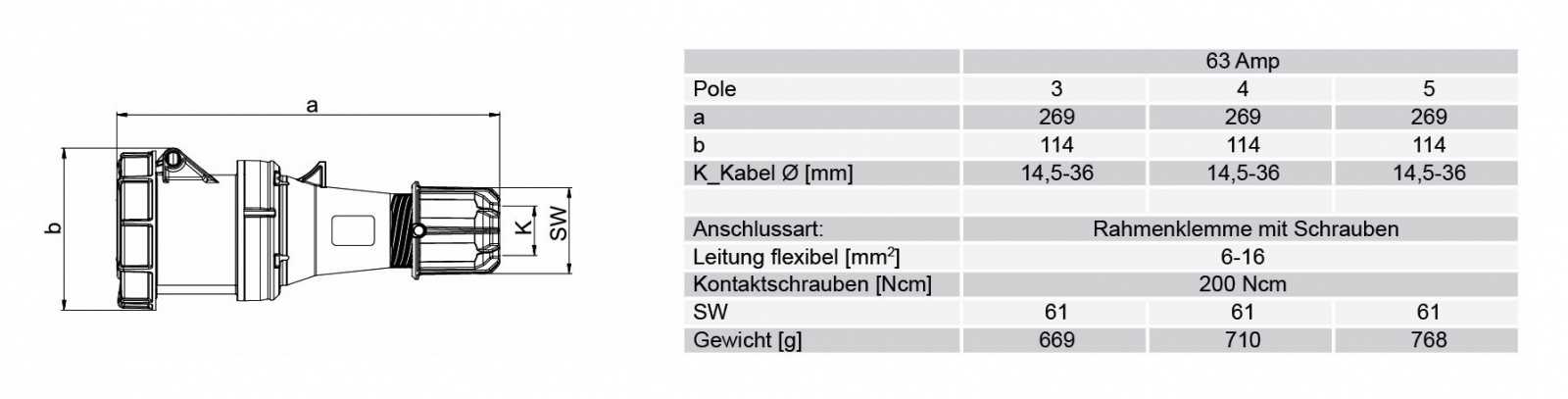 Категория Силовой Производитель PCE Категория товара Разъём Номинальный ток, А 63 Пол мама Установка кабельный Тип монтажа винтовая клемма Количество контактов 5 Диаметр совместимого кабеля, мм 14,5-36,0 Цвет корпуса красный Класс защиты IP67 Температура эксплуатации -30°C +80°C -